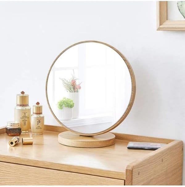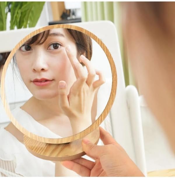 UNİCHROME Şık Tasarım Menteşeli Eğimi Ayarlanabilir 13 cm Yuvarlak Masaüstü Ahşap Makyaj Aynası