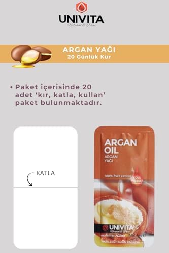 UNIVITA %100 Doğal Katkısız Argan Yağı – 20 Günlük Bakım Kürü – 80 ml (4ml x 20)