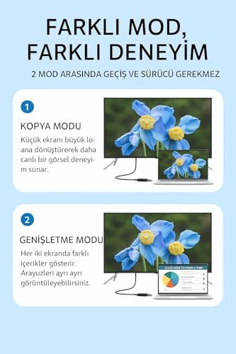 ・Yüksek Çözünürlük ve Hızlı Veri Aktarımı USB-HDMI dönüştürücü adaptörü, maksimum 1080P Full HD desteği sunar. USB 3.0 bağlantısına sahip bilgisayarlarda 5Gbps’e kadar veri iletim hızı sağlar. Bu sayede ekran gecikmesi ve gürültü azalır, yüksek kaliteli video ve görüntüleri konforlu bir şekilde izleyebilirsiniz. ・Akıllı Çip ve Yüksek Kaliteli Alüminyum Alaşım USB-HDMI dönüştürücü adaptör gövdesi düz çizgili bir tasarıma sahip olup alüminyum alaşımdan üretilmiştir. Bu hem şık hem de dayanıklı ve oksidasyona karşı dirençlidir. USB 3.0 konnektörleri altın kaplama ile üretilmiş olup aşınmaya karşı yüksek dayanıklılık, etkili ısı dağılımı ve daha kararlı veri aktarımı sağlar. Ayrıca, aşırı ısınma koruması, elektrik kaçağı koruması, CPU yükünü azaltma gibi çoklu koruma sistemine sahip gelişmiş bir akıllı çip ile donatılmıştır. Bu sayede uzun süreli kullanımda bile ekran kararması, kopma, gecikme gibi sorunlar önlenir ve kararlı performans korunur. ・Aynalama Modu ve Genişletme Modu Bu ürün, genişletme modu sayesinde dizüstü bilgisayar ekranında aynı anda birden fazla görevi görüntüleyebilir. Aynalama modunda ise dizüstü bilgisayar ekranınızı büyük ekranda görüntüleyerek daha iyi bir görsel deneyim sunar. ・Geniş Uyumluluk USB-HDMI dönüştürücü, Windows 11, Windows 10, Windows 8, Windows 7, Mac OS ve diğer sistemleri destekler. USB 3.0’dan HDMI’a Dönüştürücü Adaptör – 1080P Full HD, Yüksek Hızlı 5Gbps Veri Aktarımı, Aynalama & Genişletme Modu, Windows & Mac OS Uyumlu HD08