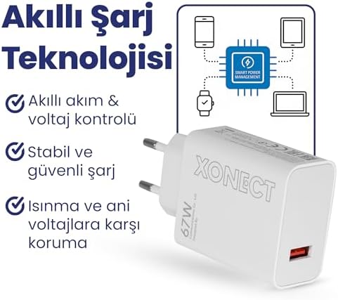 ⚡ 67W Ultra Hızlı Şarj: Cihazlarınızı minimum sürede şarj ederek zamandan tasarruf sağlar. Özellikle yüksek güç gerektiren cihazlar için idealdir. ⚡ Güçlü Çıkış Performansı: 67W gücündeki adaptör, birden fazla cihazı aynı anda hızlı ve verimli bir şekilde şarj edebilme kapasitesine sahiptir. ⚡ Akıllı Şarj Yönetimi: Şarj sırasında cihazınızın ihtiyaç duyduğu gücü otomatik olarak ayarlayan akıllı sistemle her cihaz için en uygun hızda şarj sağlar. ⚡ Çok Katmanlı Güvenlik Koruması: Aşırı ısınma, kısa devre ve aşırı akım koruma teknolojisi ile cihazlarınızı her türlü riskten korur. ⚡ Geniş Uyumluluk: Telefonlar, tabletler, dizüstü bilgisayarlar ve diğer USB-C uyumlu cihazlar için evrensel hızlı şarj desteği sunar. – USB Çıkışlı 67W Hızlı Şarj Adaptörü ve 1M USB to Type-C Kablo Seti