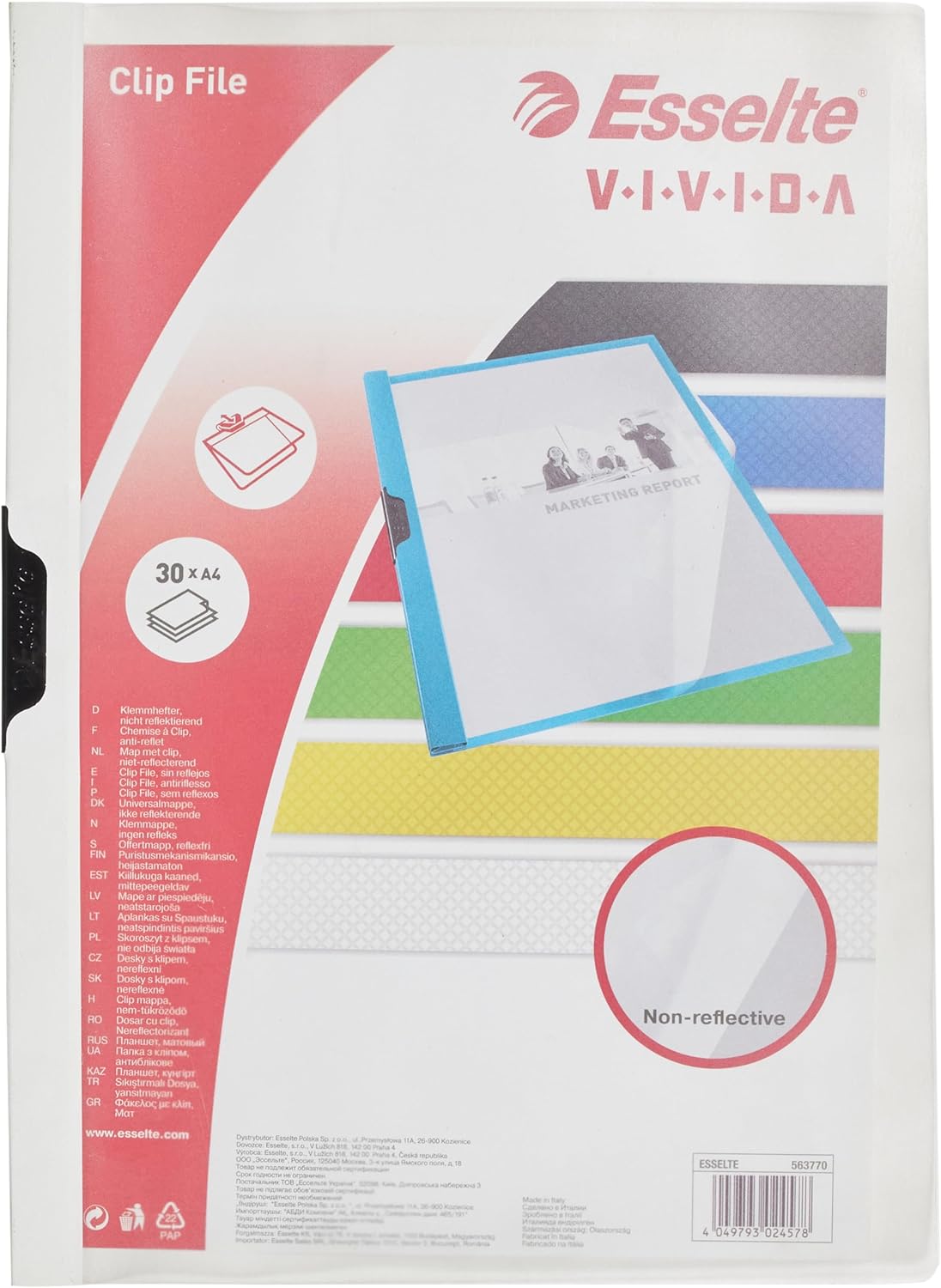 Klipsli beyaz dozaj, 30 sayfaya kadar A4, belgeleri delmeden taşımak ve düzenlemek için ideal, ev, okul ve ofis için ideal. Metal klipsli elastik kilit, yaprak miktarına göre ayarlanabilir, ön kapak açık kalır. Diğer tüm VIVIDA ürünlerine mükemmel uyar, klasör projelerine ve VIVIDA evrak çantasına sığar. Malzeme plastik esnek ve yansıtıcı, dayanıklı, arka tarafı açık renkli İçerik: 1 x Dosier Clip File, 30 yaprak A4, esnek plastik, beyaz, VIVIVIDA, 563770, anxalxp: 22 x 31 x 0,5 cm Vivida Sıkıştırmalı Dosya (25 adet)