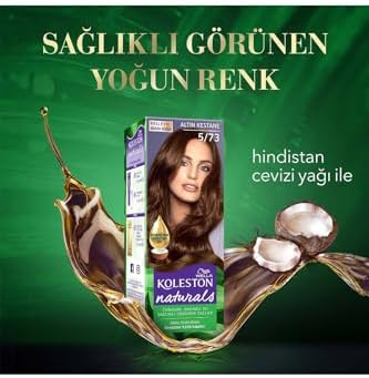 6 haftaya kadar kalıcı yoğun renk ve sağlıklı görünüm En dirençli beyazlarda bile mükemmel beyaz kapama Yoğun renk pigmentleri Hindistan Cevizi Yağı içeren Yoğun Bakım Kremi Wella Koleston Naturals Saç Boyası 5/73 Altın Kestane