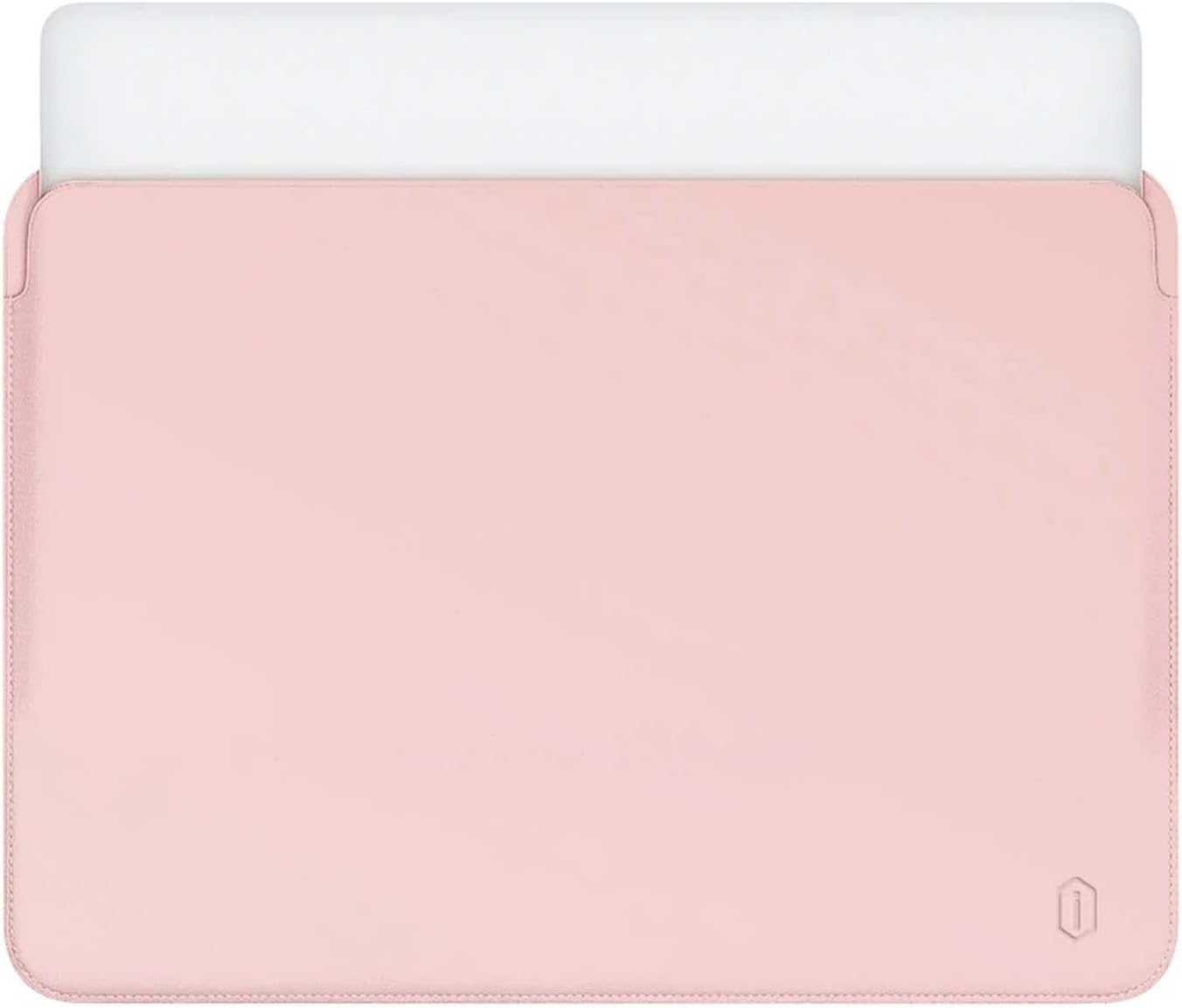 WIWU Skin Pro Laptop Çantası Kılıfı Air 13.6 M2 M3 M4 ve Pro 14.2 M1 M2 M3 M4 Uyumlu Deri Ultra İnce Zarf Tipi Pembe
