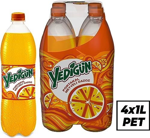 Yedigün Portakal Meyveli Gazoz Yedigün Portakal Meyveli Gazoz, enfes meyve lezzetiyle tam da istediğin gibi keyifli anlarına eşlik etmek ve seni ferahlatmak için var Yedigün portakal suyundan gelen enfes aromasıyla tadına doyamayacağın bir lezzet deneyimi sunan bir gazlı içecek En ideal tüketim için soğuk içiniz Yedigün Portakal Meyveli Gazoz Pet 4×1 L